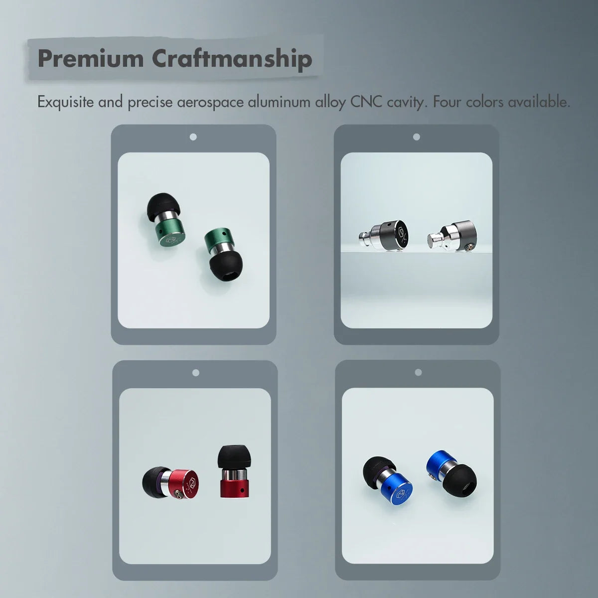 The bullet shaped ear cavities of ROSESELSA Photon Pro are made up of high-quality aerospace-grade aluminum alloy material. The shells have a textured finish as they are crafted using high-precision CNC machining process. Photon Pro is available in four exciting color options, Red, Blue, Gray, and Green color.